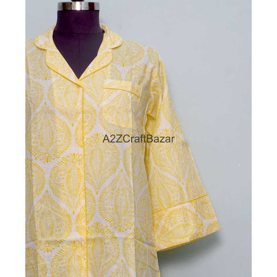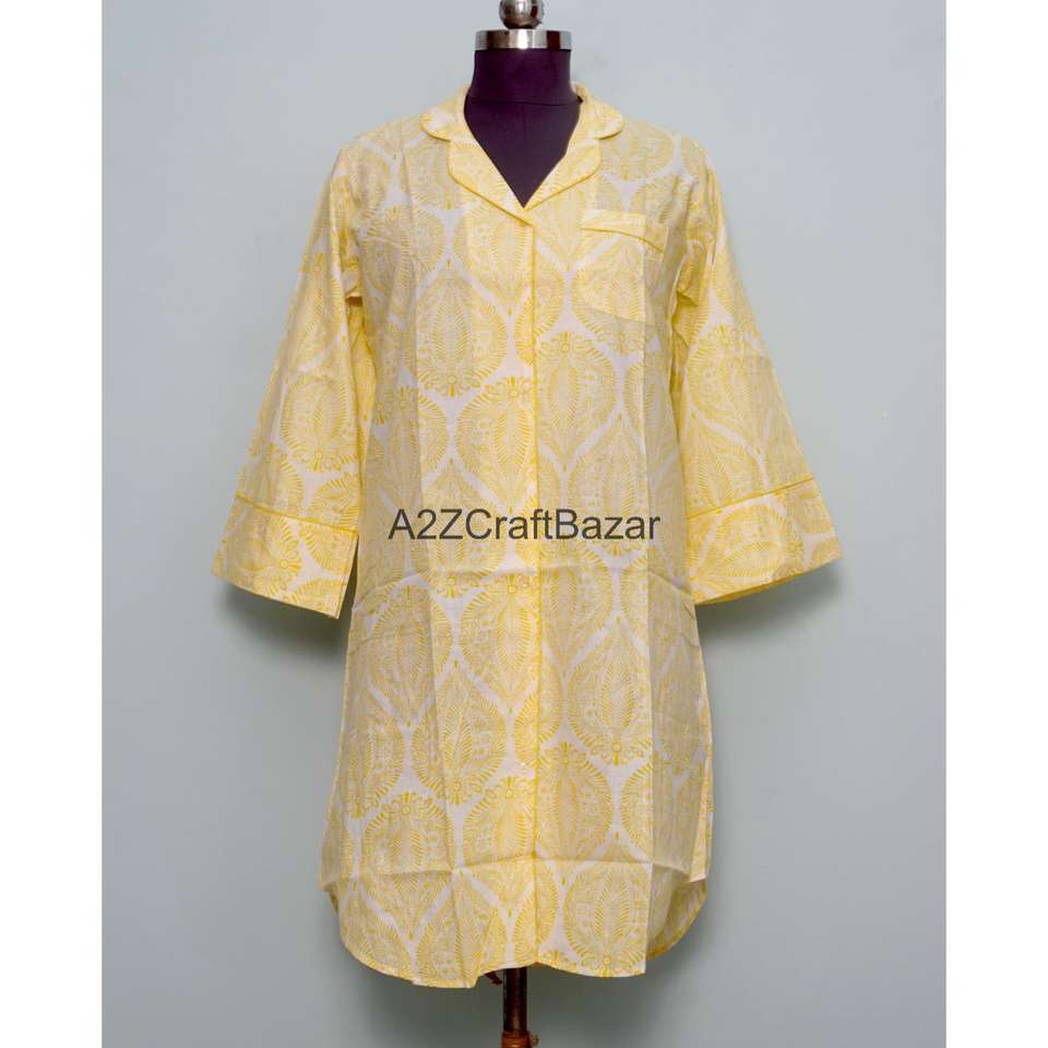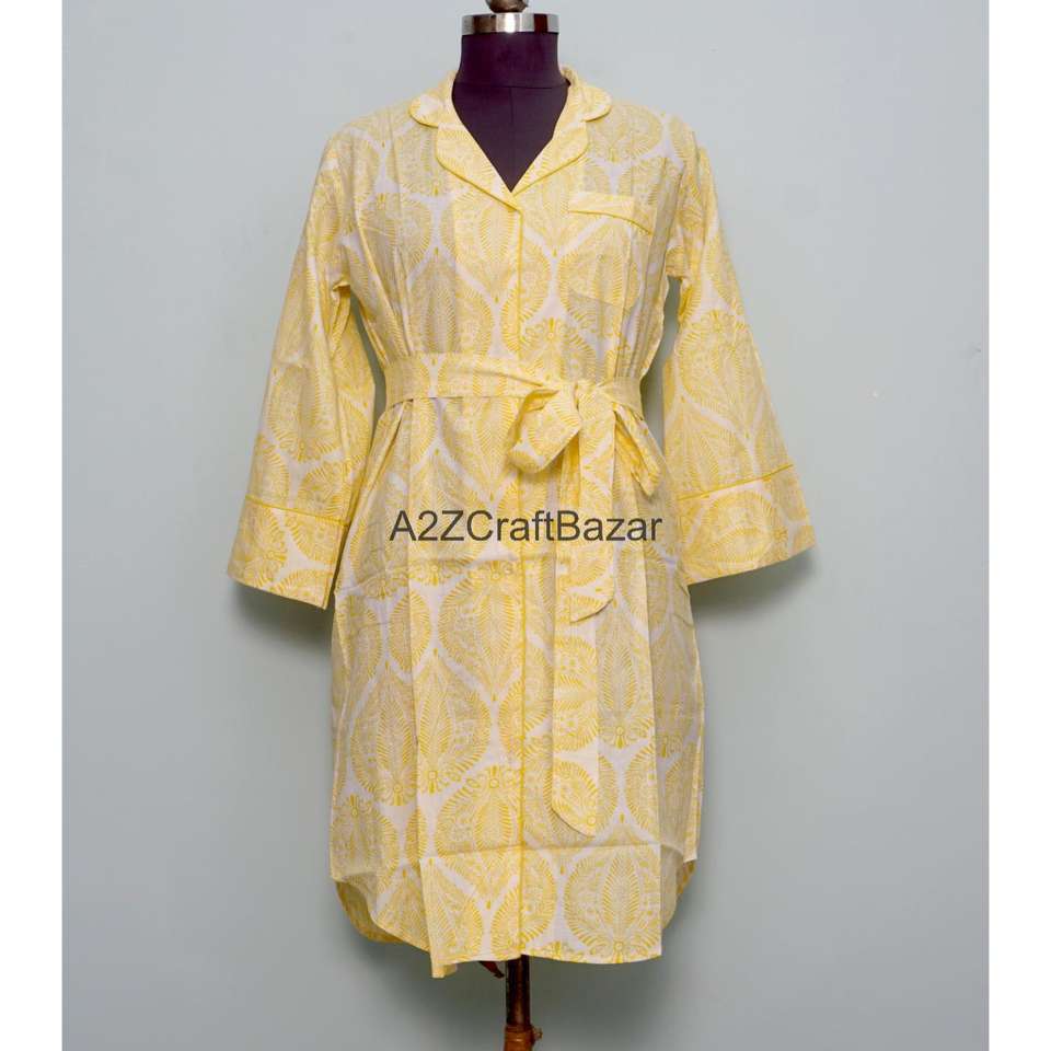 เดรสผ้าฝ้ายแท้ 100% ทำมือ พิมพ์ลายดอกไม้ แขนทรงระฆัง ปกคอเสื้อพับได้ ความยาวปานกลาง เป็นมิตรต่อสิ่งแวดล้อม ระบายอากาศได้ดี เหมาะสำหรับใส่ในฤดูร้อน