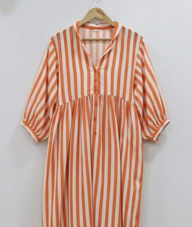 ชุดเดรสฤดูร้อนแบบเรียบง่ายเป็นมิตรกับสิ่งแวดล้อม ทำด้วยมือจากผ้าฝ้าย 100% ลายพิมพ์บล็อกอินเดียลายดอกไม้ ระบายอากาศได้ดี ความยาวปานกลาง ผ้าธรรมชาติ