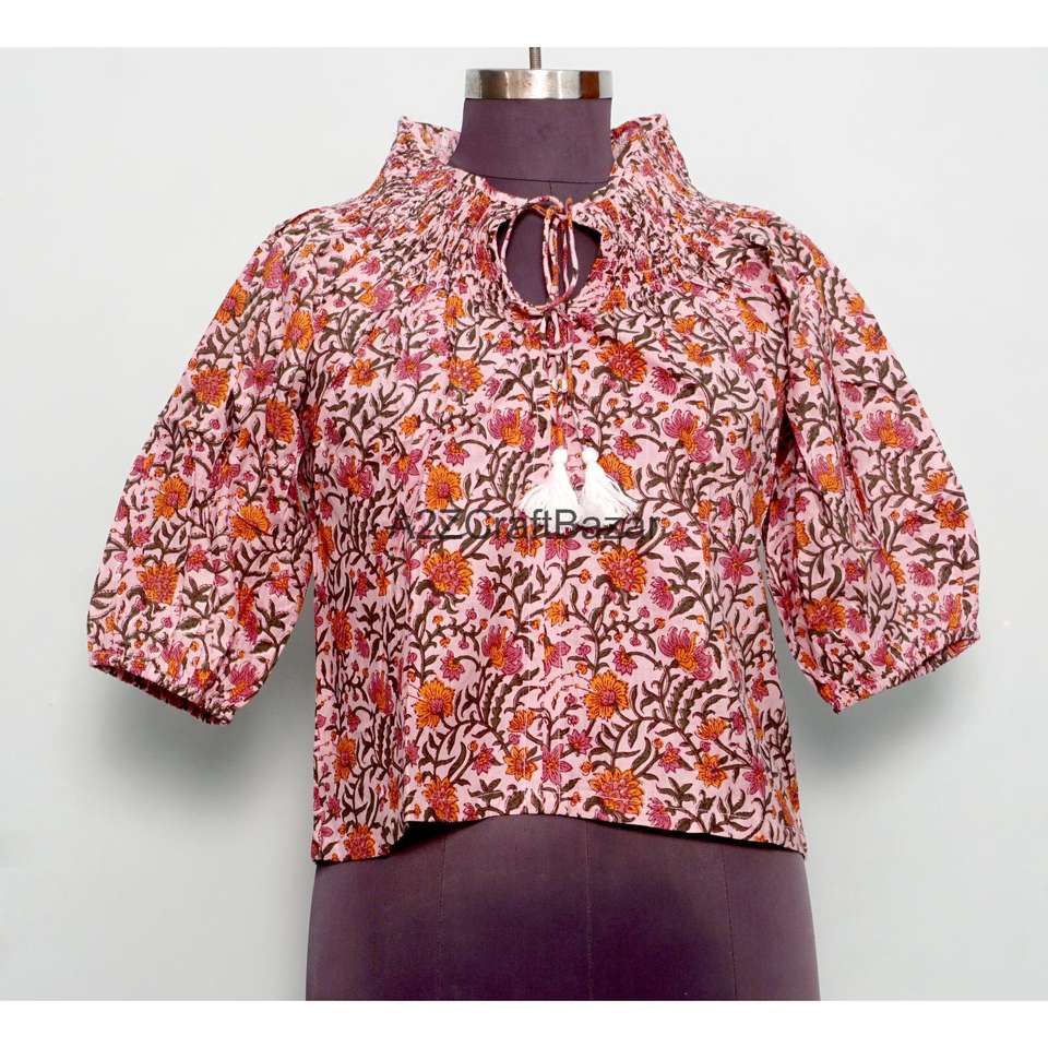 100% Cotton Handmade Knitted Breathable Eco-Friendly Summer Spring Office Women Casual Mini Long Sleeve O-Neck Block Print