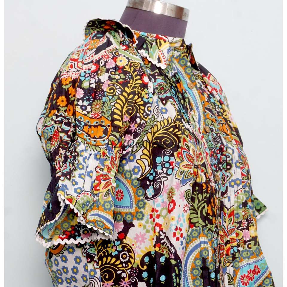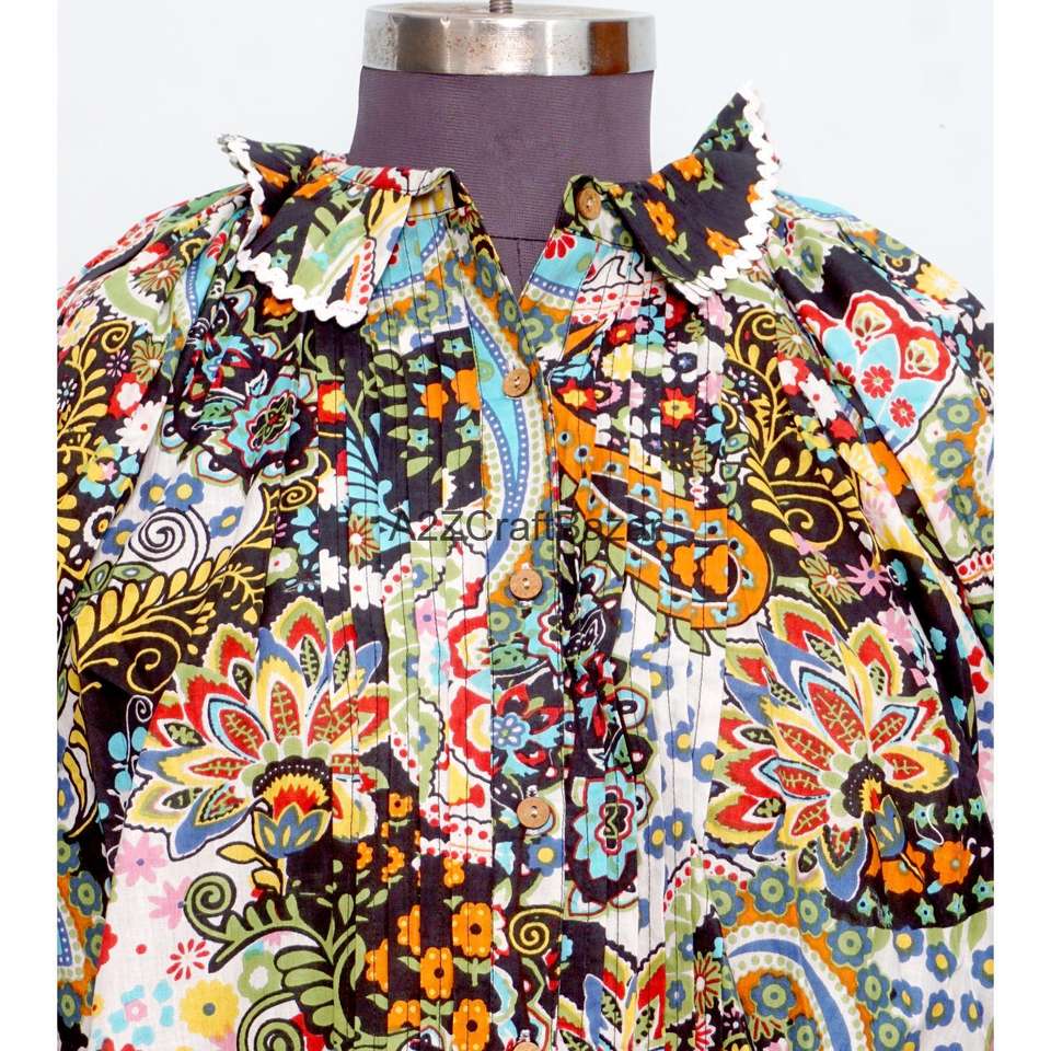100% Cotton Handmade Knitted Women's Office Lady Casual Breathable Mini Long Sleeve O-Neck Floral Print Modern Loose Sweet