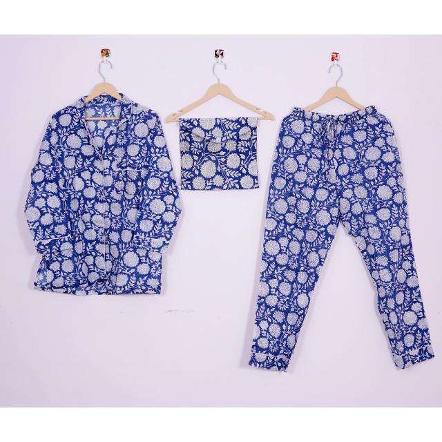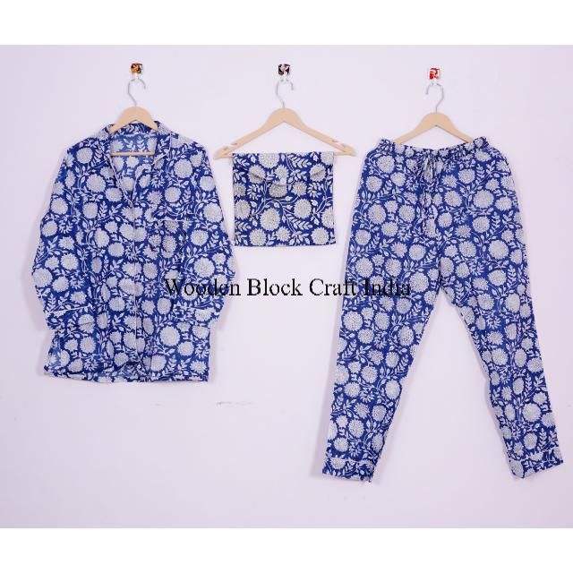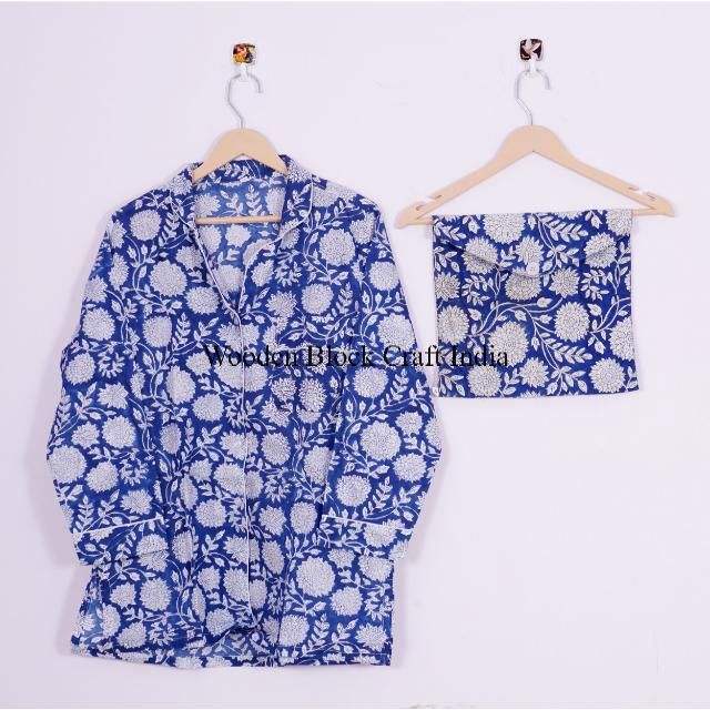 ชุดนอนผ้าฝ้ายแท้ 100% ทำมือสำหรับผู้หญิง พร้อมกระดุมปิด ปกคอพับได้ มีกระเป๋า กระเป๋าเข้าชุด ใส่สบาย