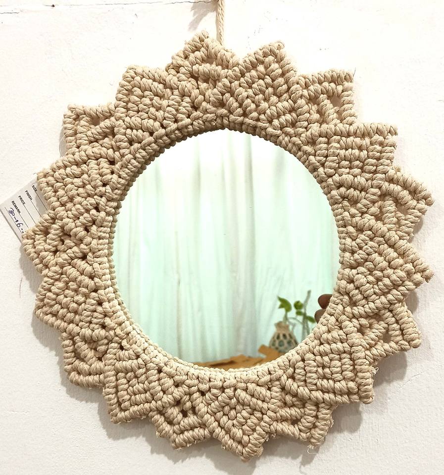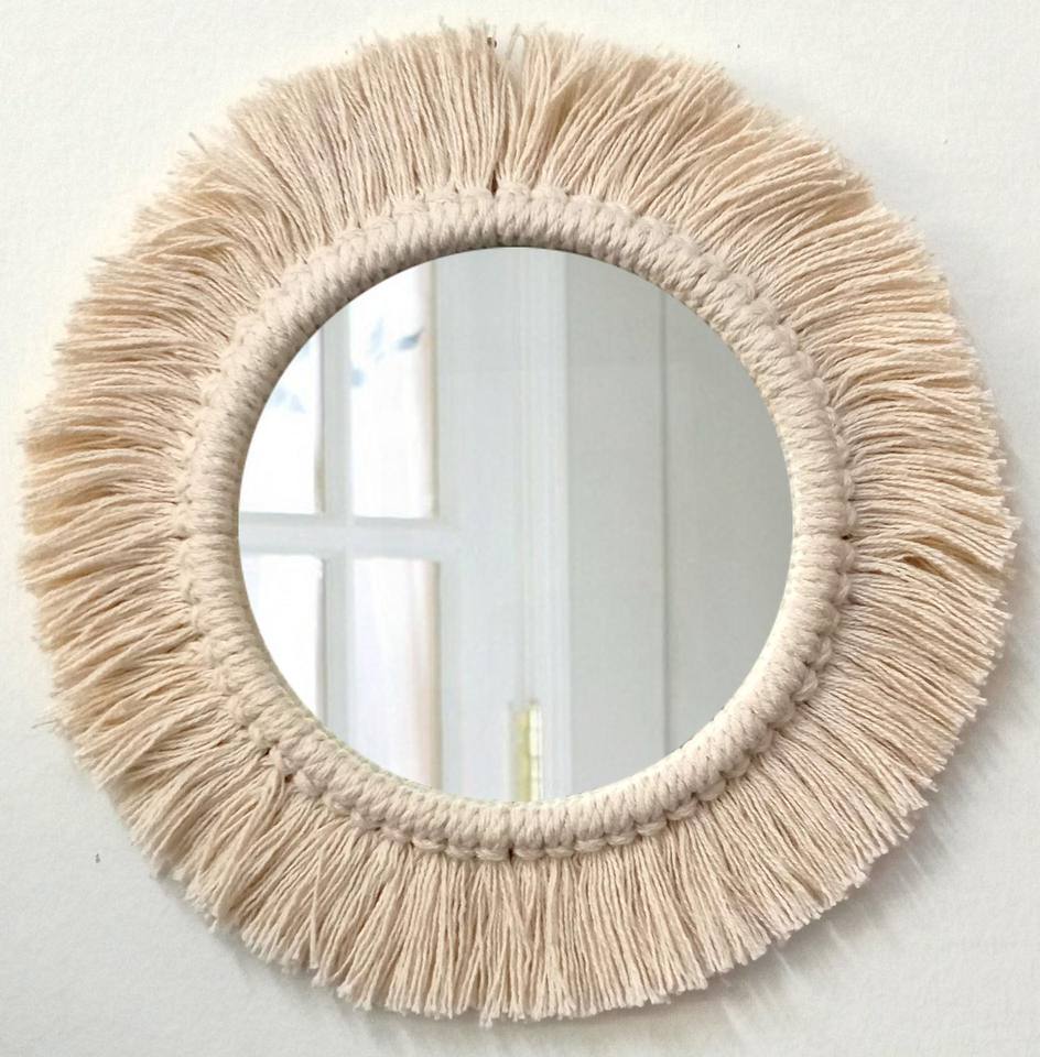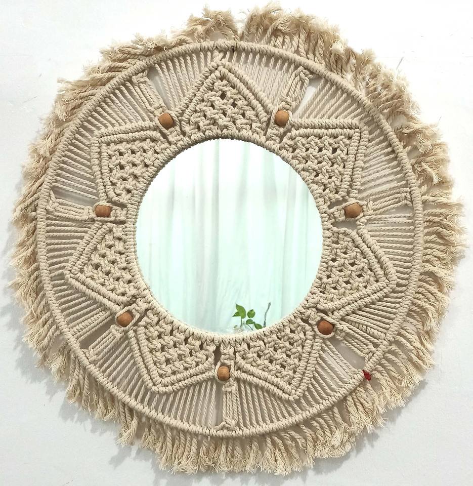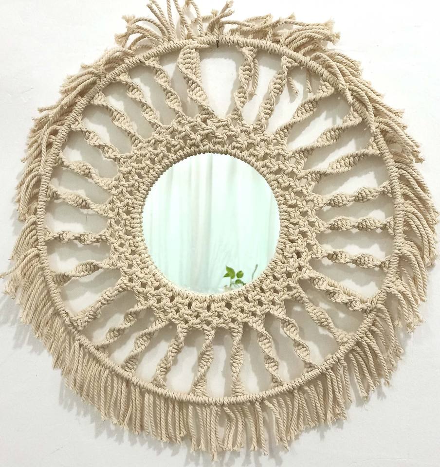 ผ้าฝ้าย100% ทำด้วยมือตกแต่งบ้าน Macrame กระจกรอบแขวนผนัง