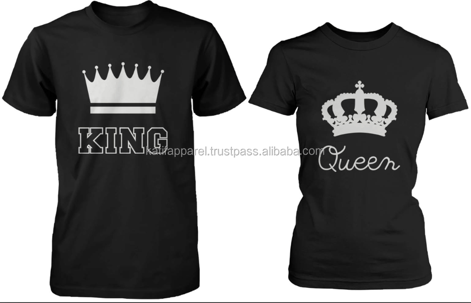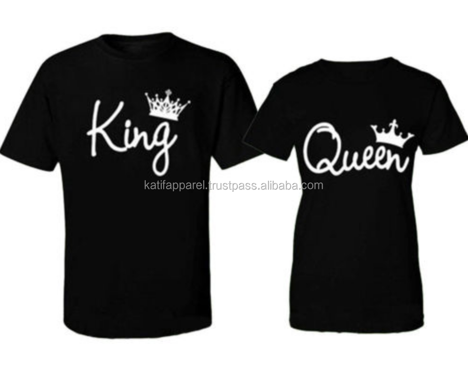 เสื้อยืดพิมพ์ลายสกรีนด้านหลังราชาและราชินีผ้าคอตตอน100%