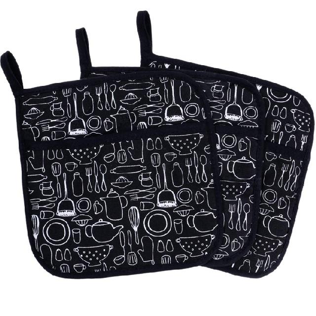 ผ้าคอตตอน100% สำหรับใส่หม้อนวมเตาอบที่วางหม้อได้รับการรับรองพิมพ์ลายแบบใช้ซ้ำได้อย่างยั่งยืนนุ่มมีสไตล์ใส่สบาย