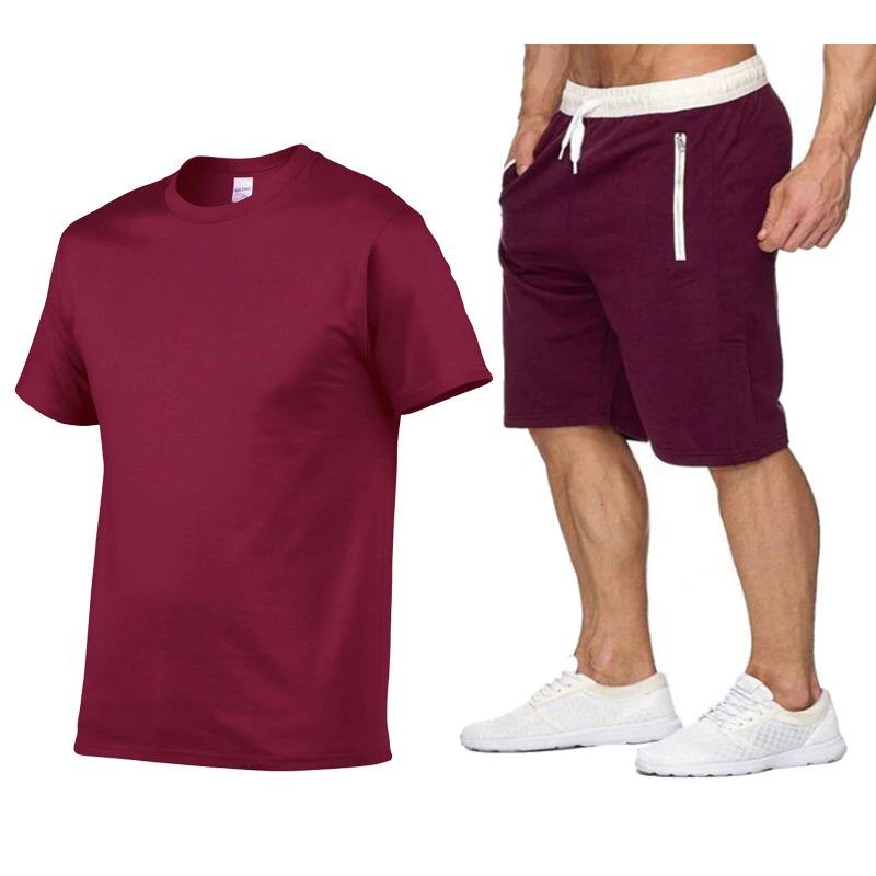 ผ้าฝ้าย100% คุณภาพสูงสองชิ้นเสื้อยืดและชุดสั้น