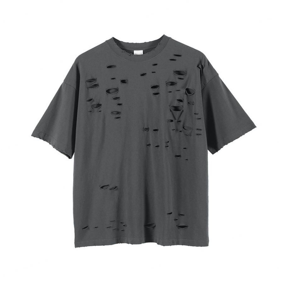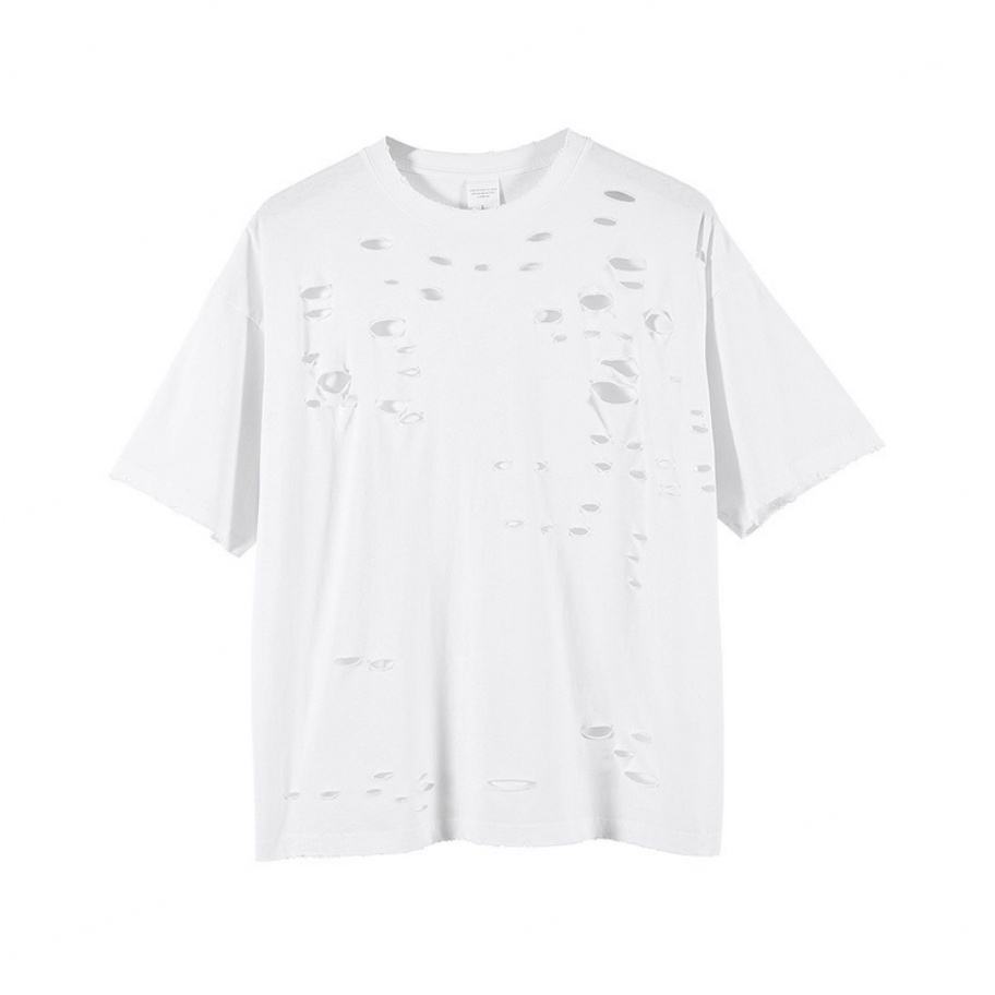 เสื้อยืดโอเวอร์ไซส์ผ้าฝ้าย 100% สำหรับผู้ชาย สไตล์สตรีท รับสกรีนโลโก้ ตัดเย็บพร้อมพิมพ์ลายดิจิทัล ทรงยาว มีรู