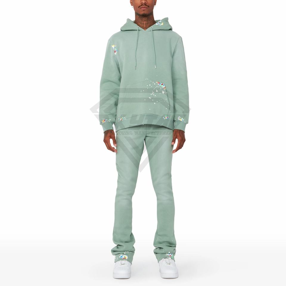 ชุดวอร์ม100% มีฮู้ดและกางเกงขาบานสำหรับผู้ชายชุดวอร์มแฟชั่นกลางแจ้งสำหรับผู้ชายใส่สบาย