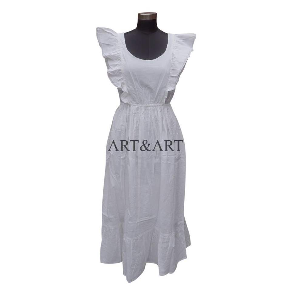 ชุดแม็กซี่เดรสผ้าฝ้ายสีขาวสไตล์อินเดียสำหรับผู้หญิงชุดเดรสผ้าฝ้าย100% ใส่ตอนกลางวันสวมใส่สบายชุดชายหาดเอวธรรมชาติเป็นมิตรกับสิ่งแวดล้อม