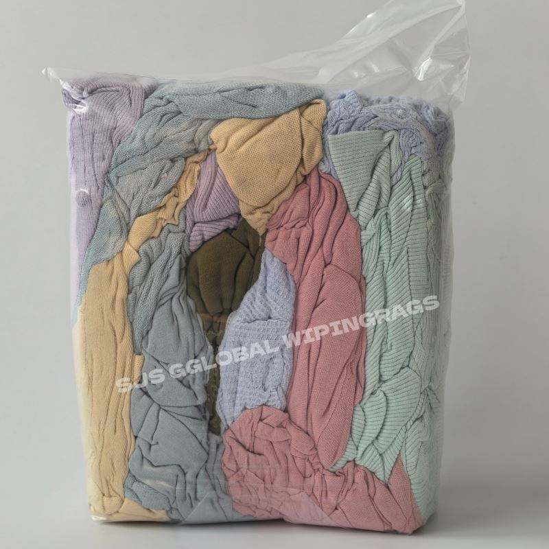 ผ้าฝ้ายอุตสาหกรรม 100% น้ำหนัก 10 กก. ผ้าทำความสะอาดรีไซเคิล สีผสมอ่อนๆ ซึมซับน้ำและน้ำมันได้ดี