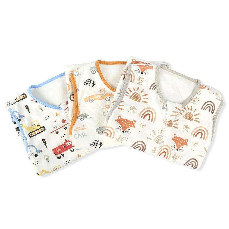ถุงนอนเด็กทารกผ้าฝ้าย 100% 0.5 ทอก ผ้าห่อตัวเด็กแรกเกิด ซิปคู่ ระบายอากาศได้ดี เป็นมิตรกับสิ่งแวดล้อม ป้องกันแบคทีเรีย แบบไม่มีแขน