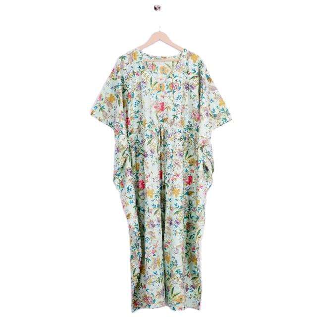 ชุดคาฟตันผ้าฝ้ายแท้ 100% สำหรับผู้หญิง ลายพิมพ์อินเดียแบบทอธรรมชาติ สไตล์หลวมๆ ใส่สบายๆ ในฤดูร้อน เหมาะสำหรับพักผ่อนในฤดูใบไม้ผลิ