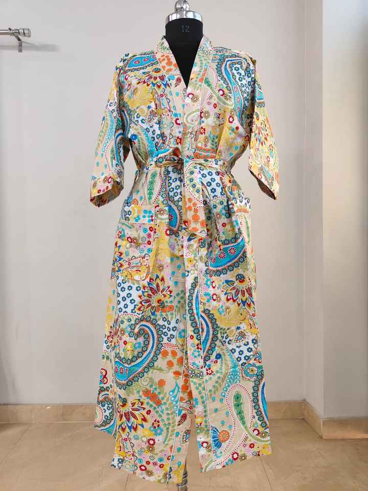 ชุดกิโมโนผ้าฝ้าย 100% ชุดกิโมโนผ้าฝ้ายสวยงาม ชุดกิโมโนผ้าฝ้ายลายดอกไม้แบบอินเดีย ของขวัญขายดีสำหรับเธอและเขา ชุดลำลอง