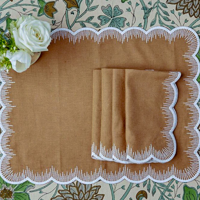 100% Cotton Kitchen Napkin Set Scallop Edge Design Reusable Natural Fabric Soft High Quality Table Decor Party Dinner Bulk