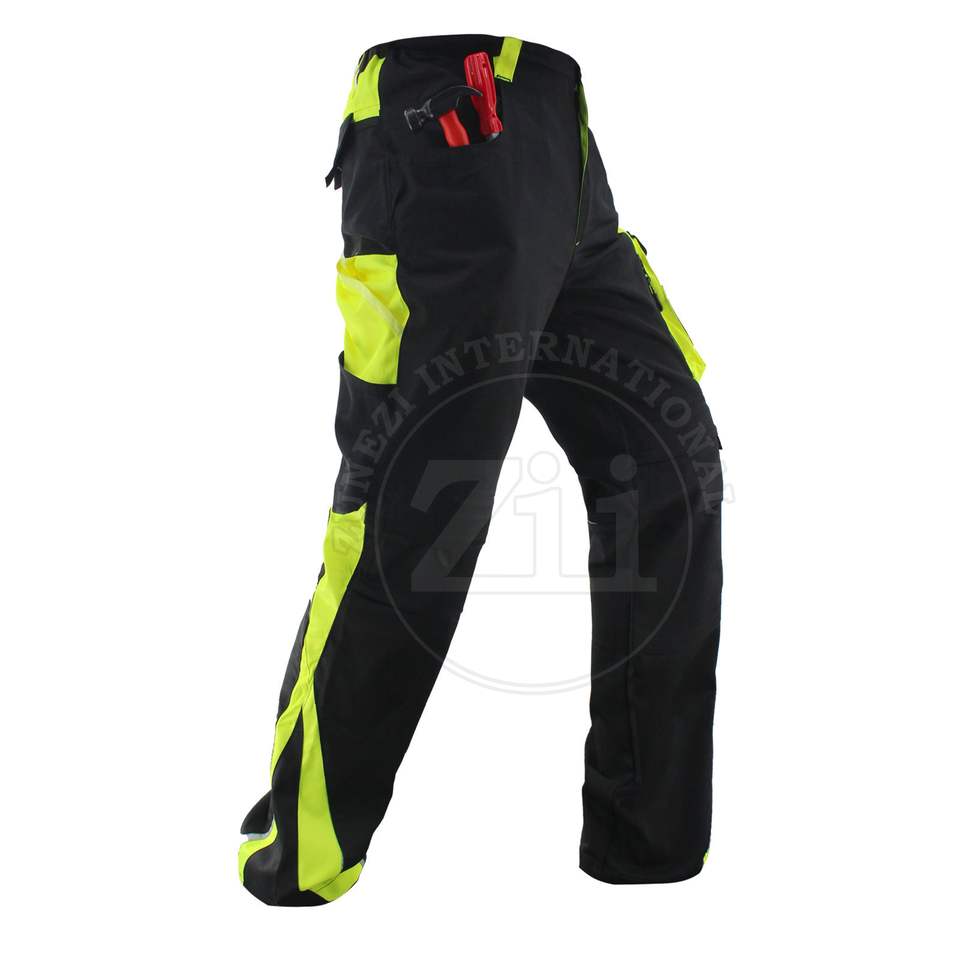 กางเกงทำงานผู้ชายผ้าฝ้าย 100% พร้อมไฟ LED สะท้อนแสง มองเห็นได้ชัดเจน มาตรฐาน ANSI Class 1 EN ISO 20471 Class 2 สีเหลือง ป้องกันความปลอดภัย