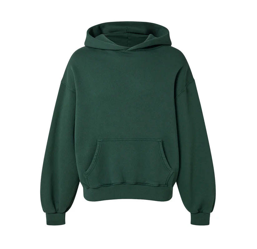 เสื้อสเวตเตอร์คอกลมของผู้ชายสีเขียวผ้าฝ้าย100% มีฮู้ดผ้าฟลีซทรงหลวมแนวสตรีทสำหรับผู้ชาย