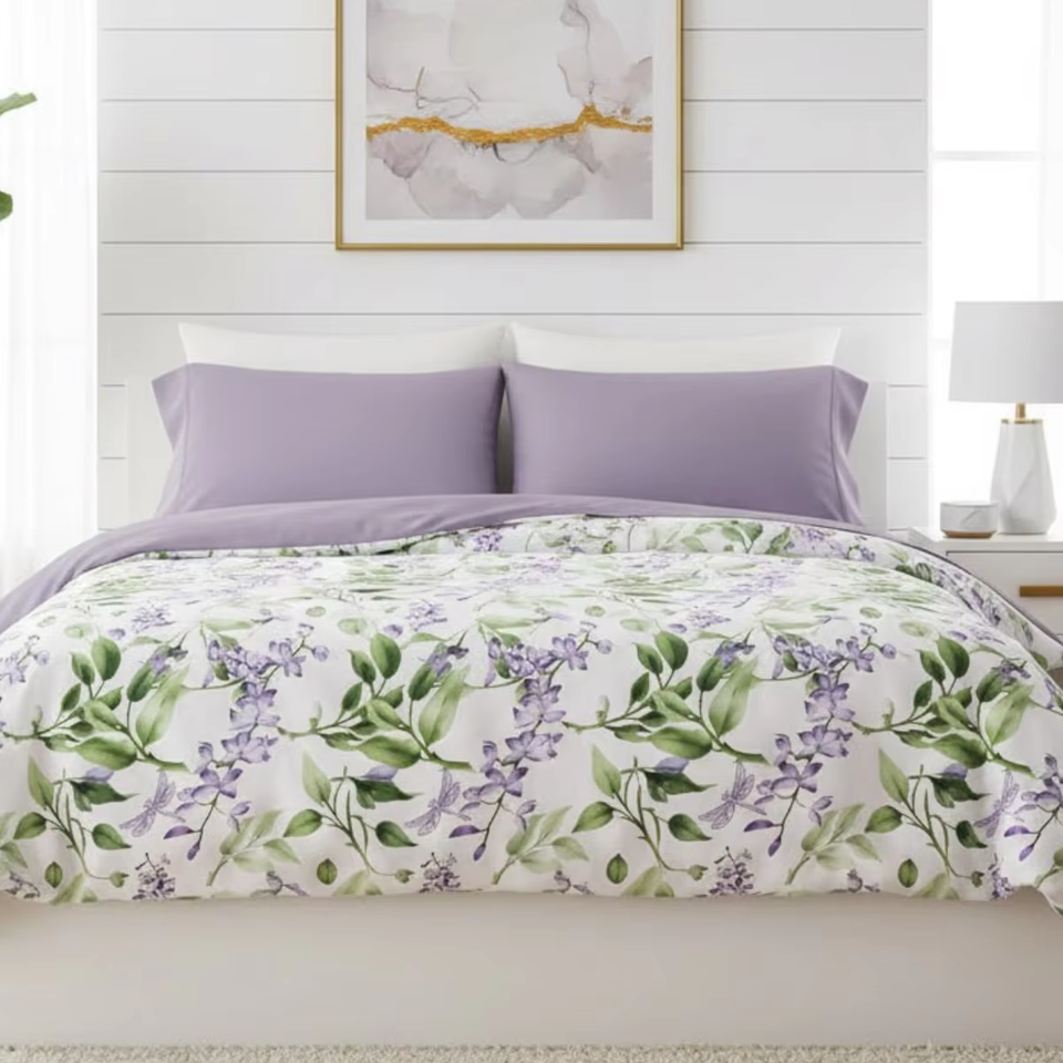 ชุดเครื่องนอนลายดอกลาเวนเดอร์ผ้าฝ้าย 100% นุ่มสบาย ปลอกผ้านวมสำหรับใช้ในบ้าน ความละเอียดสูง