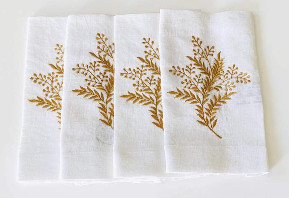 ผ้าลินินผ้าฝ้าย100% คุณภาพสูงสำหรับใช้ในครัวผ้าลินินปักลายเป็นมิตรกับสิ่งแวดล้อมชุดอนามัยที่ใช้ซ้ำได้ทันสมัยและมีสไตล์4ชิ้น