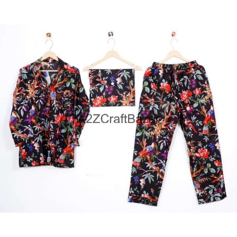 ชุดนอนผู้หญิงผ้าฝ้ายแท้ 100% สุดหรู โรแมนติก คอวี แขนยาว ลายดอกไม้ เอวยางยืด ใส่สบาย เหมาะสำหรับทุกงานปาร์ตี้