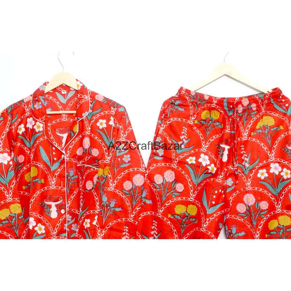 ชุดนอนเพื่อนเจ้าสาวลายดอกไม้พิมพ์ลายด้านหน้า ผ้าฝ้ายแท้ 100% หรูหรา นุ่มสบาย ระบายอากาศได้ดี แห้งเร็ว สำหรับฤดูหนาว แบบเต็มตัว สไตล์อินเดีย สำหรับผู้หญิง