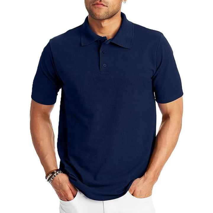 เสื้อโปโลแขนสั้นสำหรับผู้ชาย, ผ้าฝ้าย100% แห้งเร็วระบายอากาศได้ดีมีกระดุมนำเข้า