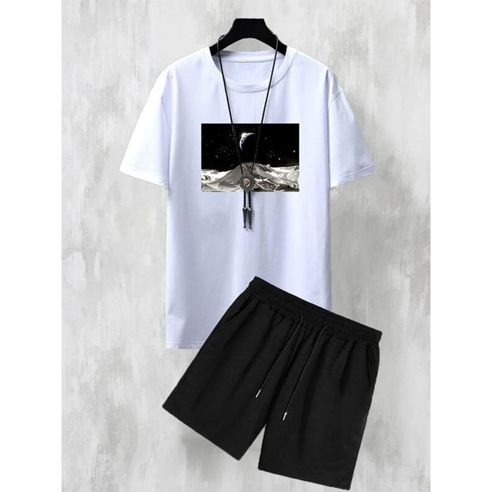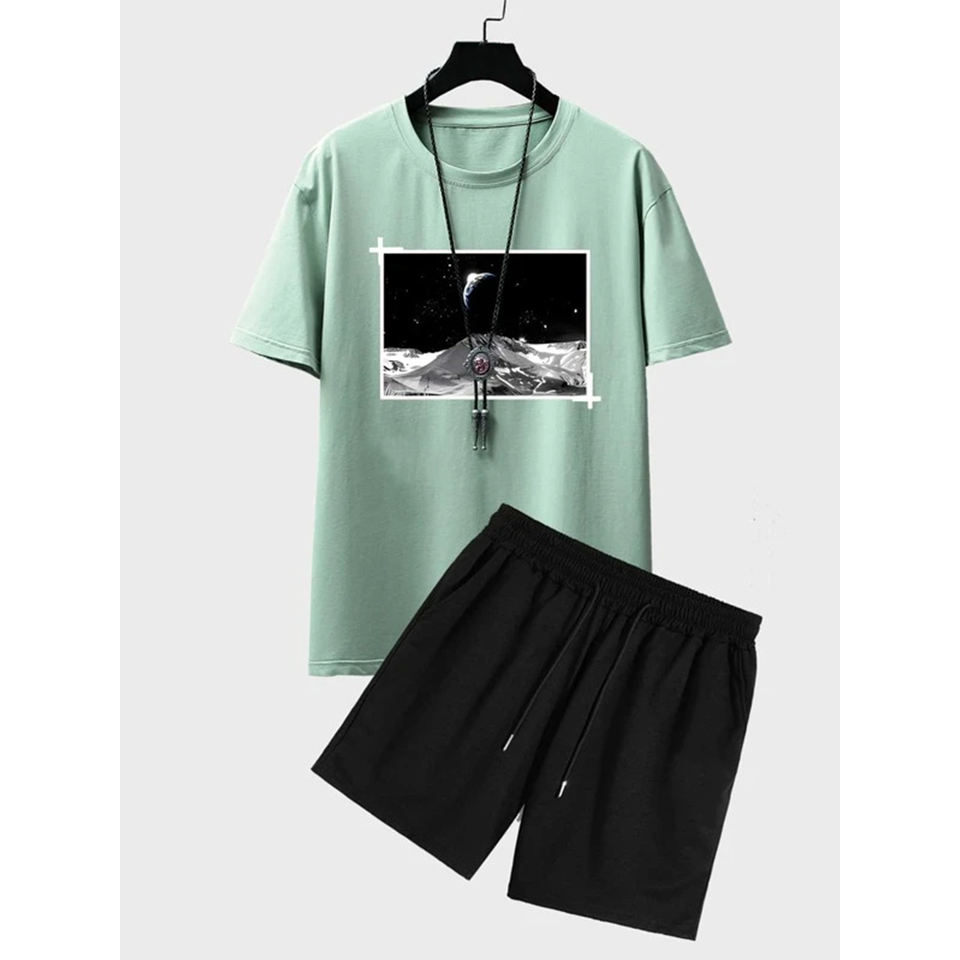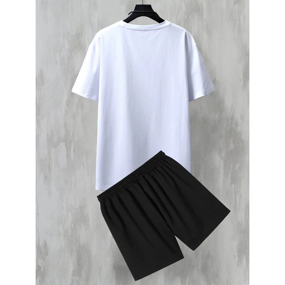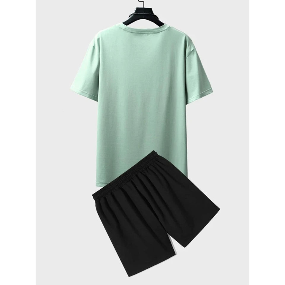 ชุดเสื้อผ้า2ชิ้นสำหรับผู้ชาย, ชุดลำลอง2ชิ้นสำหรับใส่ในฤดูร้อนเสื้อผ้าเข้าชุดเสื้อและกางเกงขาสั้นทำจากผ้าฝ้าย100%
