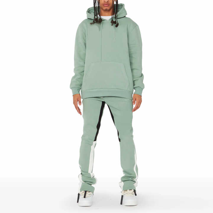 ชุดวอร์มผู้ชายสีเขียวมิ้นท์แบบกำหนดเอง ชุดเสื้อฮู้ดและกางเกงจ็อกเกอร์ผ้าฝ้ายฟลีซคุณภาพสูง ขายส่ง ดีไซน์ใหม่ ระบายอากาศได้ดี