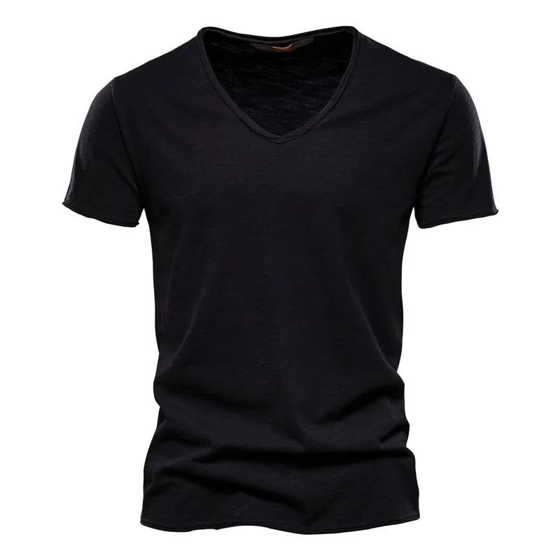 เสื้อยืดผู้ชาย คอวี ผ้าฝ้าย 100% ดีไซน์ทันสมัย ทรงเข้ารูป สีพื้น เสื้อยืดแขนสั้น คอวี สำหรับผู้ชาย