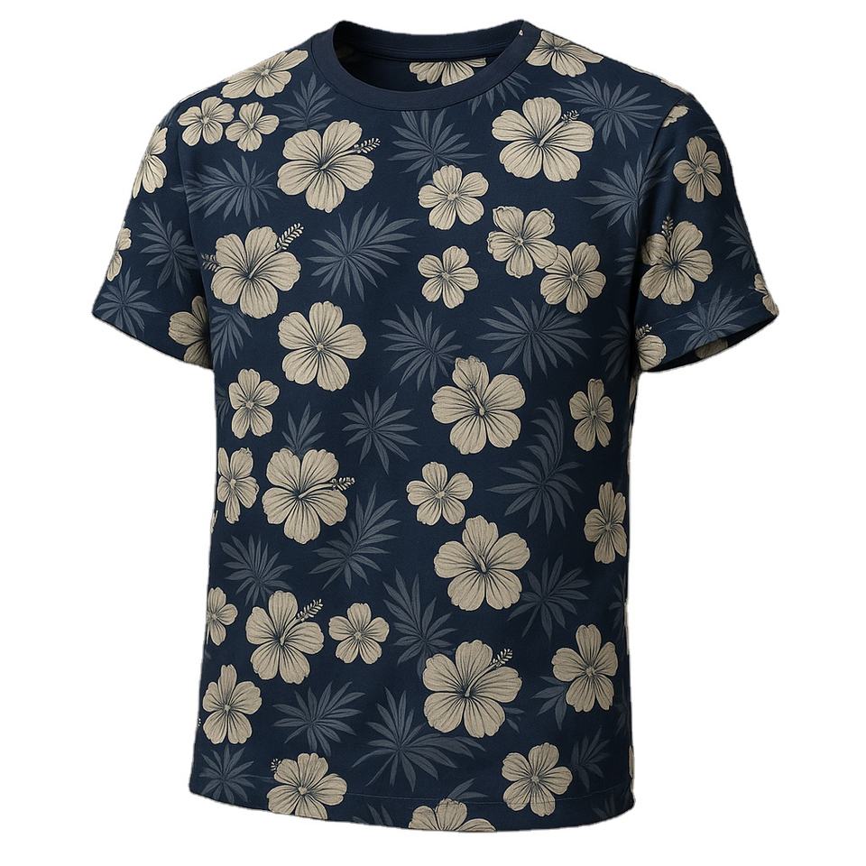 เสื้อยืดผ้าฝ้าย100% ชาย AOP ลำลองแขนสั้นพิมพ์ลายเสื้อถักคอกลมเสื้อพิมพ์ลายสำหรับผู้ชาย
