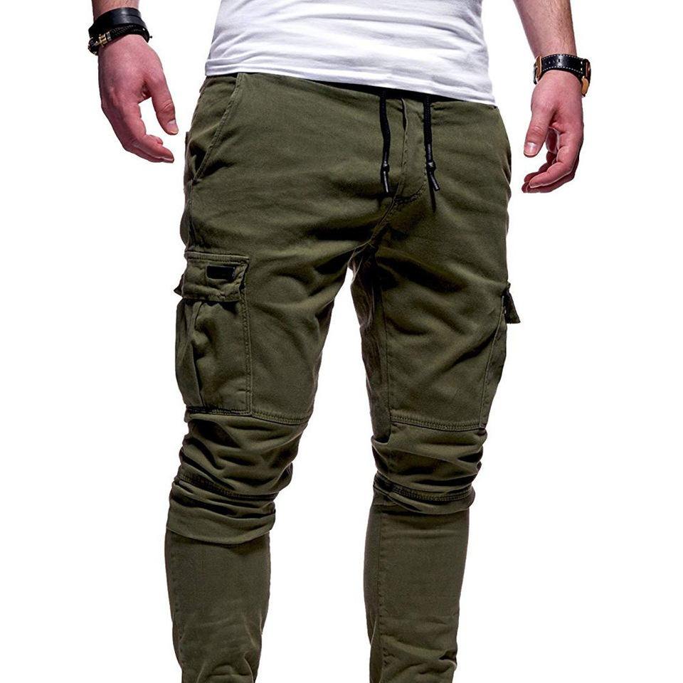 กางเกงผ้าแคนวาสผู้ชายทรงลำลอง 100% ผ้าฝ้าย เอวยางยืด จีบด้านหน้า ระบายอากาศได้ดี เหมาะสำหรับออกกำลังกายกลางแจ้งและสวมใส่ลำลอง
