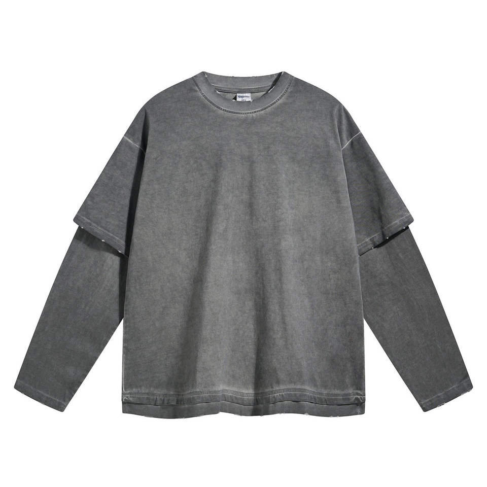 เสื้อยืดแขนยาวสองชั้นของผู้ชายผ้าฝ้าย100% เสื้อยืดผ้าทอคู่เพื่อความสบายสูงสุด