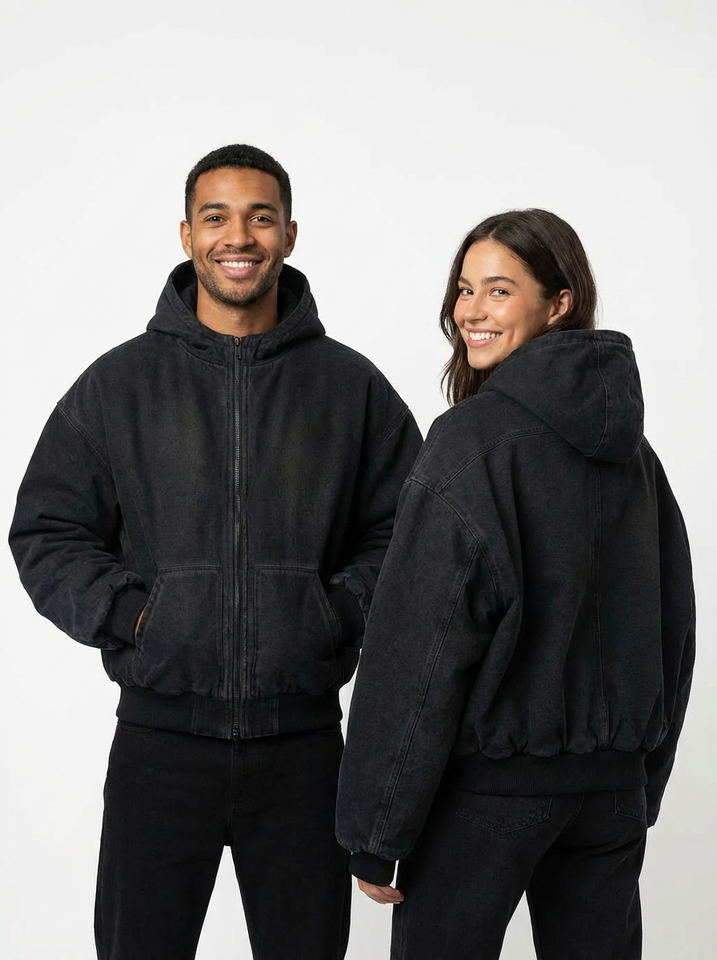 เสื้อฮู้ดดี้ผู้ชายผ้าฝ้าย 100% แบบเป็นมิตรต่อสิ่งแวดล้อม แขนเสื้อขนาดใหญ่ ซิปด้านหน้า มีฮู้ด ดีไซน์ทันสมัย สไตล์ลำลอง พิมพ์ลายตามสั่ง ซักย้อมสีแบบแอซิดวอช ไซส์พลัส