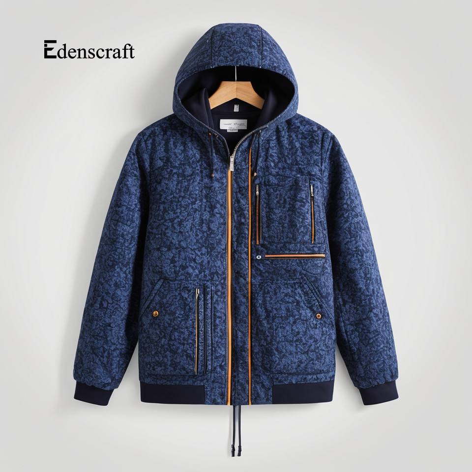 100% Cotton Men's Hooded Canvas Jacket Warm Lightweight Breathable Casual Fit Winter Wear Stylish Eco-Friendly Customizable