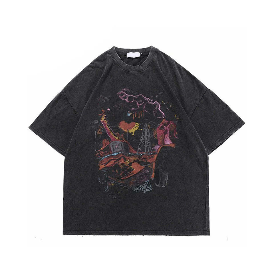 เสื้อยืดผู้ชายผ้าแคนวาส 200 กรัม ทรงหลวม ระบายอากาศได้ดี พิมพ์ลายสกรีน ดีไซน์ทรงเข้ารูปปกติ คอกลม ผลิตจากผ้าฝ้าย 100%