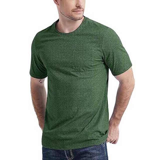 เสื้อยืดผ้าฝ้าย100% สำหรับผู้ชายสีเขียวล้วนคอกลมแขนสั้นระบายอากาศได้ดีฤดูร้อนออกแบบโลโก้ได้ตามต้องการ