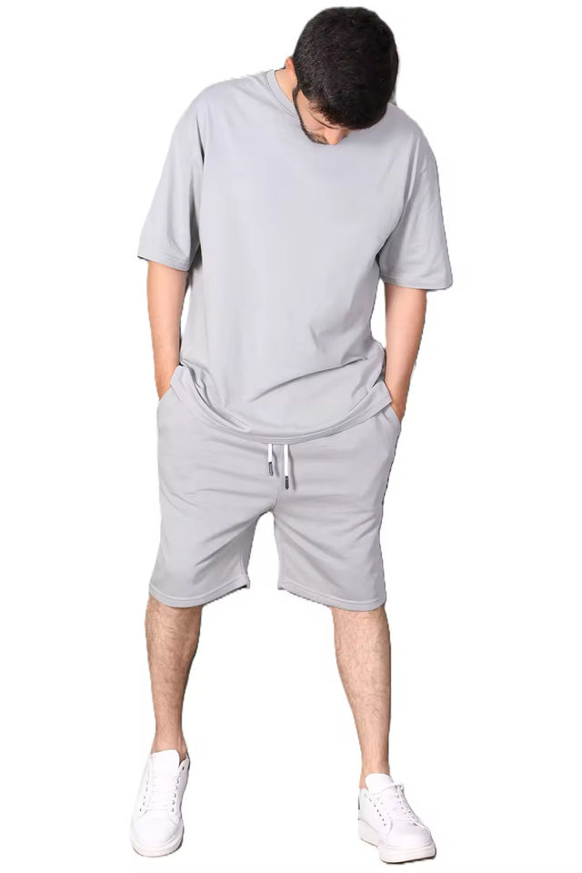 เซ็ตเสื้อยืดและกางเกงขาสั้นผ้าฝ้ายระดับพรีเมียมของผู้ชาย100% แห้งเร็วระบายอากาศสไตล์ลำลองปรับแต่งได้สำหรับฤดูร้อน