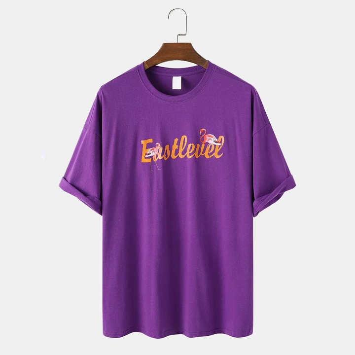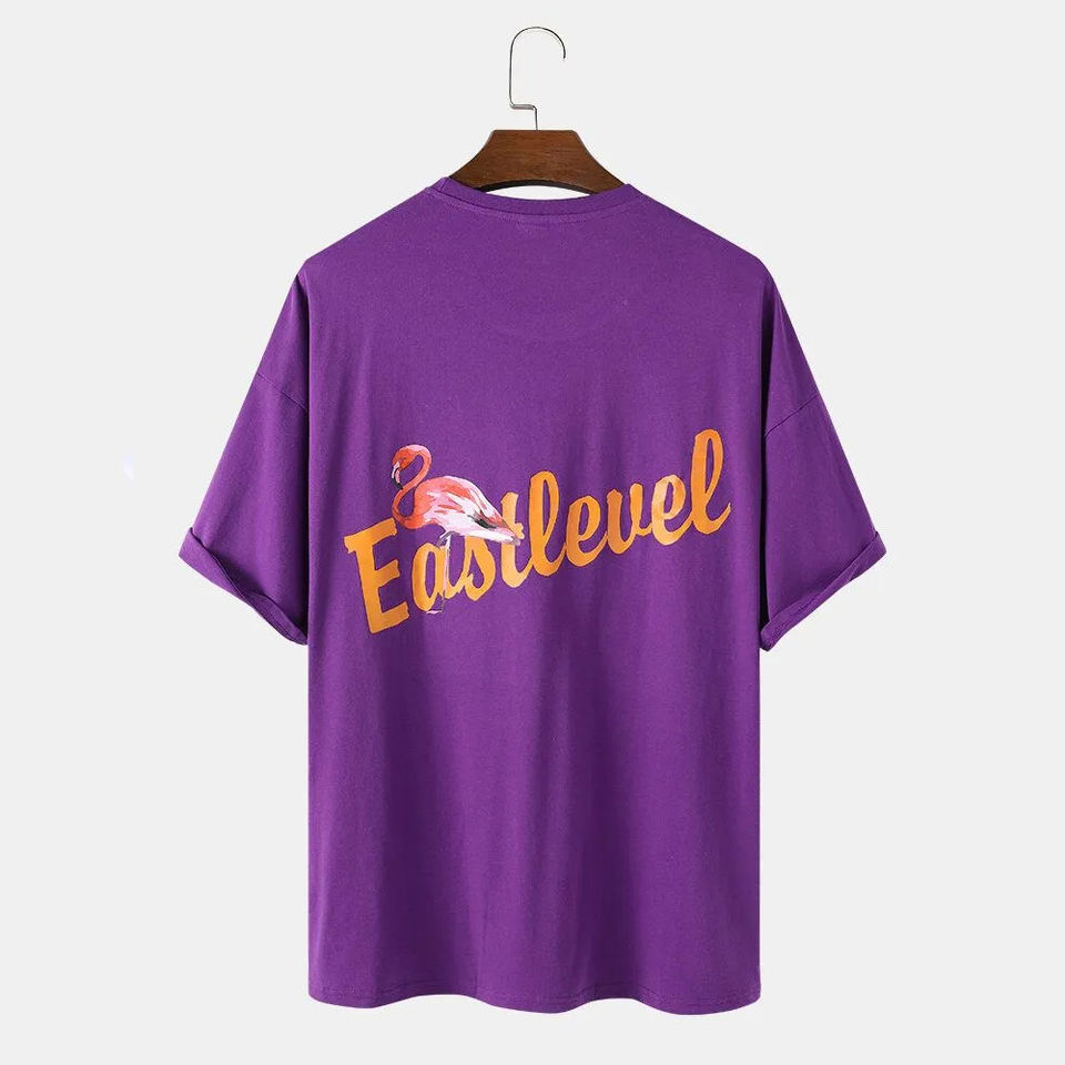 เสื้อยืดพิมพ์ลายของผู้ชายทำจากผ้าฝ้าย100% เสื้อยืดแขนสั้นทรงหลวมสไตล์สตรีท