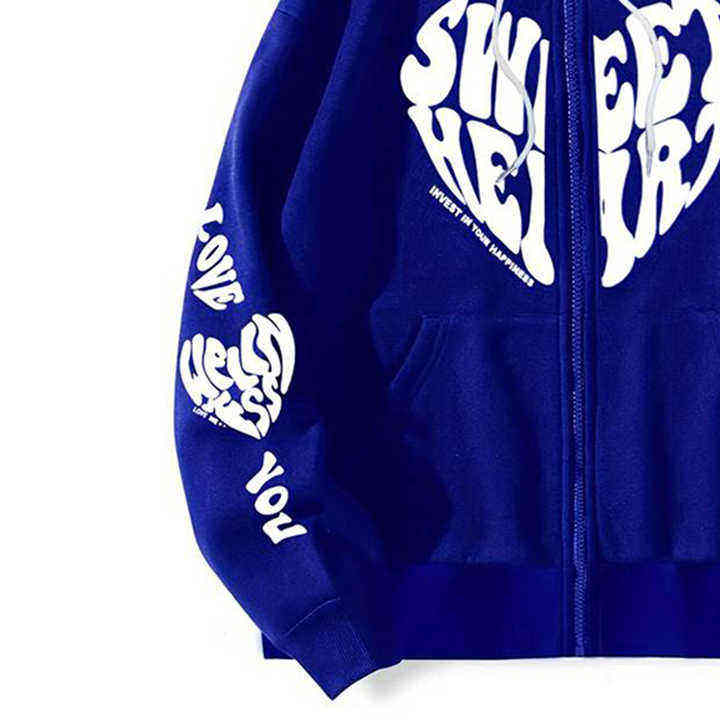 เสื้อฮู้ดซิปผู้ชายผ้าฝ้าย 100% คุณภาพสูง พิมพ์ลายพัฟฟ์ตามสั่ง สีพื้น สไตล์สตรีทแวร์สำหรับฤดูหนาว ไซส์ XL
