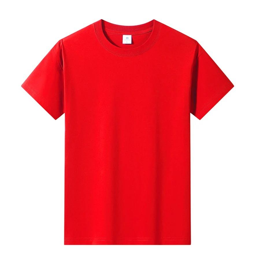 เสื้อยืด100% ผู้ชายผ้าคอตตอนสีแดงแฟชั่นใหม่สำหรับฤดูร้อน2025เสื้อยืดแขนสั้นเสื้อผ้าลำลอง