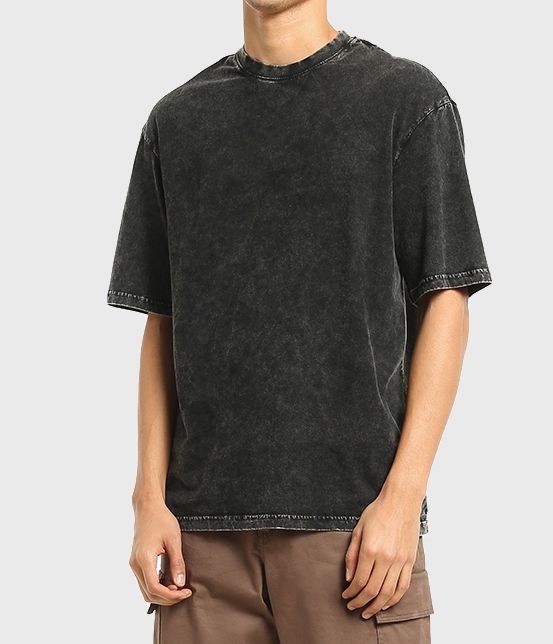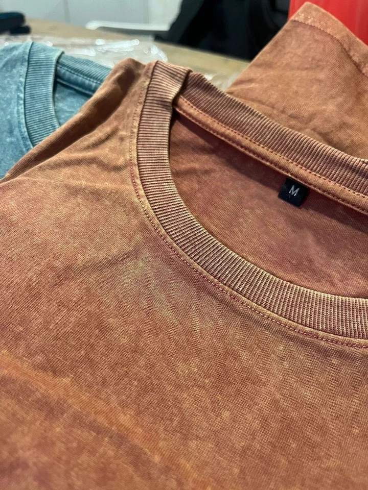 เสื้อยืดผู้ชายผ้าฝ้าย100% คอกลมแขนสั้นกรดซักด้วยเอนไซม์ผ้าโพลีเอสเตอร์/ ผ้าฝ้าย