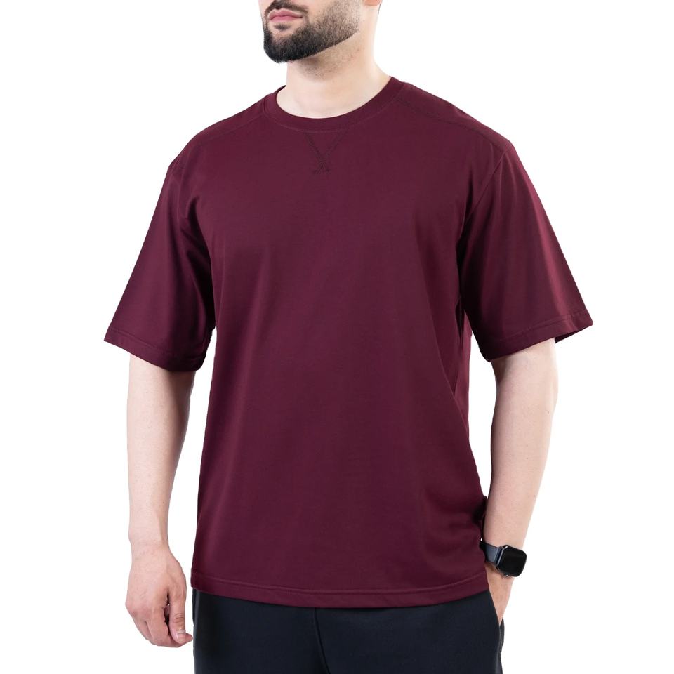 เสื้อยืดผู้ชายผ้าฝ้าย 100% ทรงหลวม แขนสั้น ทรงลำลอง สีพื้น ทรงปกติ