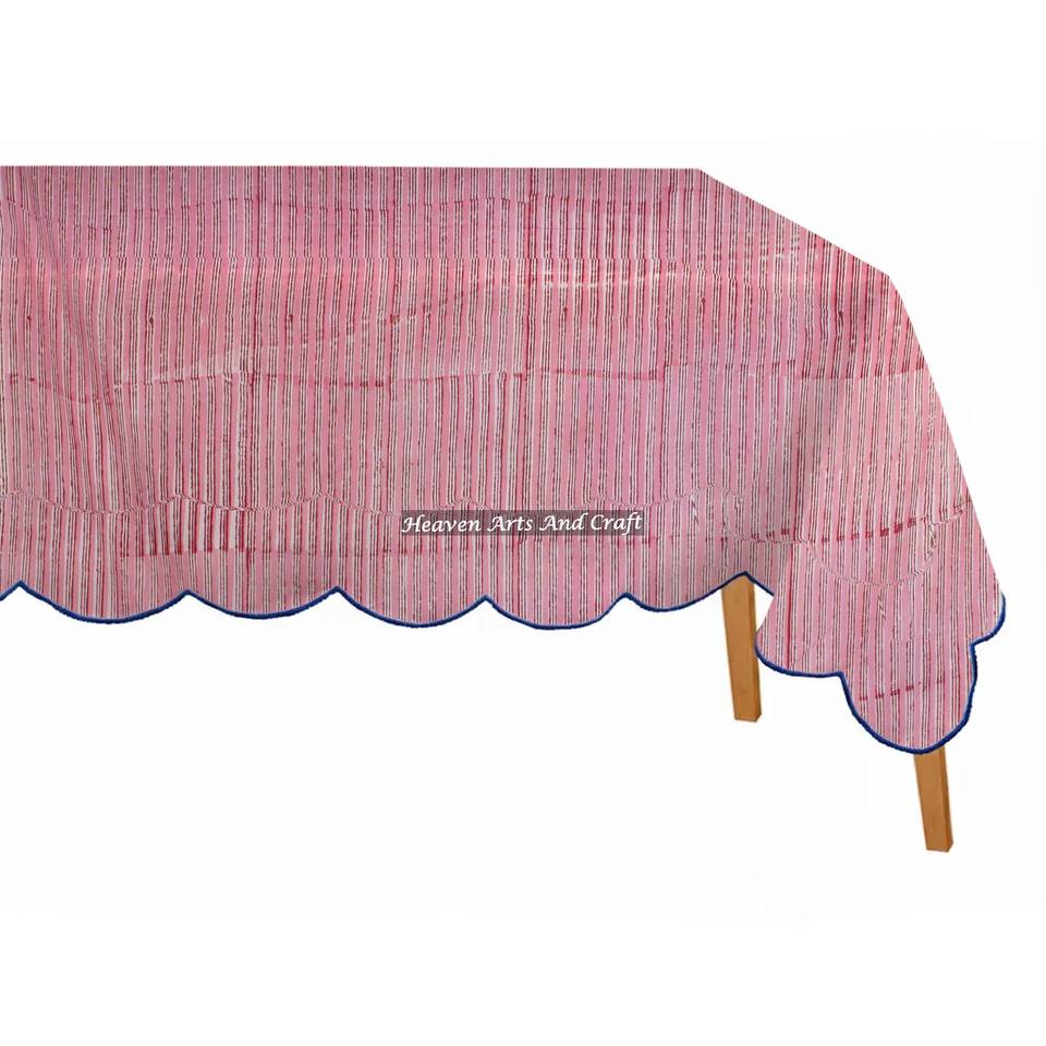 ผ้าปูโต๊ะทรงสี่เหลี่ยมผืนผ้าลายดอกไม้พิมพ์ลายบล็อกด้วยมือจากเมืองชัยปุระ ผ้าฝ้ายแท้ 100% หลายสี ขอบหยัก