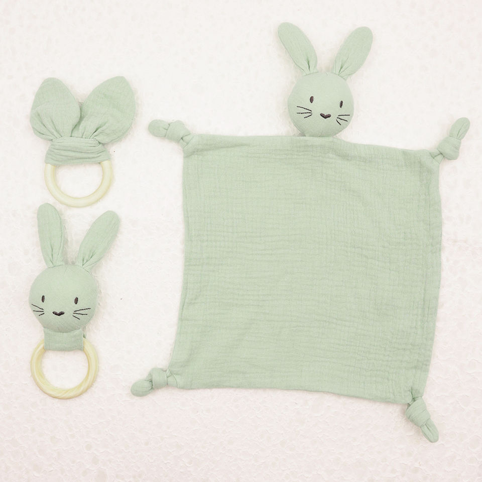 ผ้ามัสลิน 100% ผ้าเช็ดทำความสะอาดฟันสำหรับเด็ก ผ้าห่มปลอบประโลมเด็ก ตุ๊กตากระต่ายนุ่ม ของเล่นสำหรับเด็ก