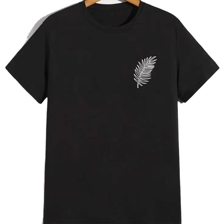 เสื้อยืดผ้าฝ้ายคอกลมแขนสั้นสำหรับผู้ชายเสื้อลำลองสีดำด้านหน้าผ้าห่อตัวก่อนซักพิมพ์ลาย100%