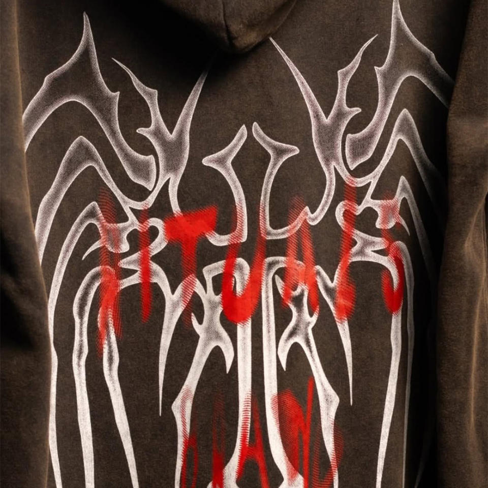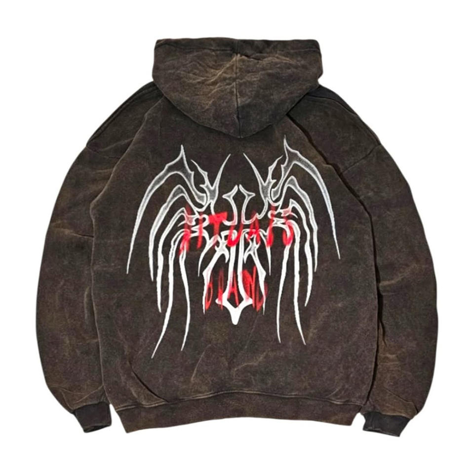 เสื้อฮู้ดซักกรดผ้าฝ้าย100% วินเทจของผู้ชายปกแบบมีฮู้ดสำหรับฤดูใบไม้ร่วงพิมพ์ลายแมงมุมโอเวอร์ไซส์