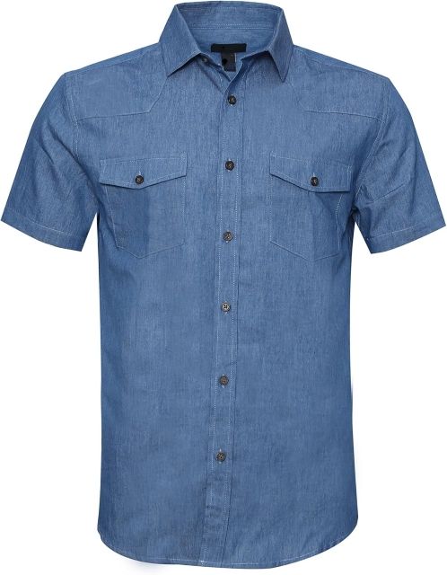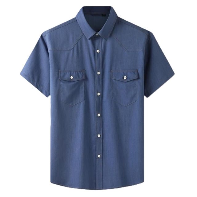 เสื้อเชิ้ตแขนสั้นผ้าเดนิมไซส์ใหญ่ 100% ผ้าฝ้าย คุณภาพสูง ระบายอากาศได้ดี สวมใส่สบายสำหรับผู้ชายในฤดูร้อน รับสกรีนโลโก้
