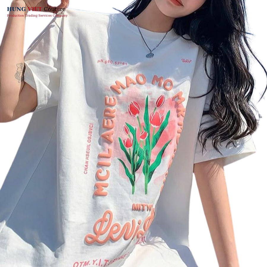 เสื้อยืดคอกลมสำหรับผู้หญิงผ้าคอตตอนขนาดใหญ่พิเศษผ้าคอตตอนสำหรับ230gsm ลายโลโก้พิมพ์ลายดิจิทัลแบบกำหนดเองเป็นมิตรต่อสิ่งแวดล้อม