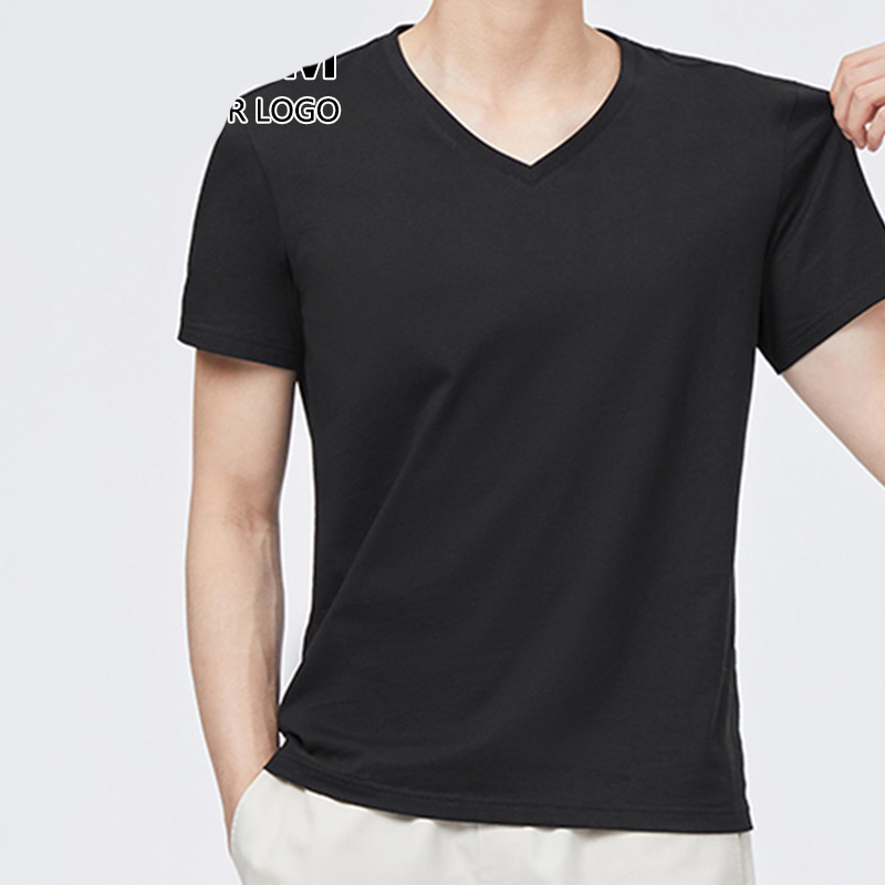 เสื้อยืดคอวีแขนสั้นสำหรับผู้ชายเสื้อ100% คอตตอนผสมโพลีเอสเตอร์คอวี