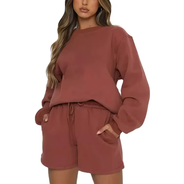 ชุดเสื้อผ้า2ชิ้นผ้าสแปนเด็กซ์/ โพลีเอสเตอร์แบบพรีเมี่ยมของผู้หญิงกางเกงขาสั้นโอเวอร์ไซส์แบบลำลองระบายอากาศได้ดีเหนือเข่า