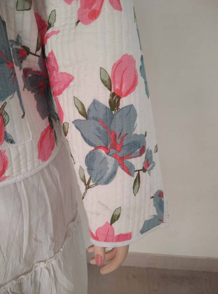 100% Cotton Printed Finished Reversible Women's Fleece Jacket Pink Blue Floral Breathable Hand Block Quilted Winter Coat Button