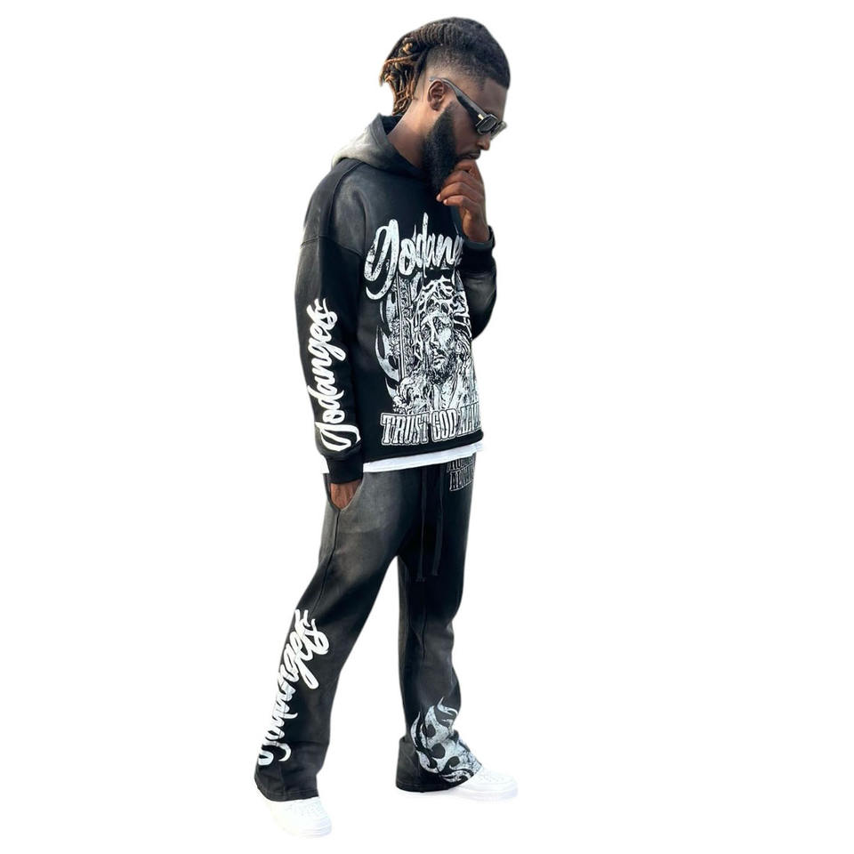 ชุดวอร์มพิมพ์ลายผ้าฝ้าย 100% ระบายอากาศได้ดี หรูหรา สไตล์สตรีท ฮิปฮอป ดีไซน์สั่งทำพิเศษ